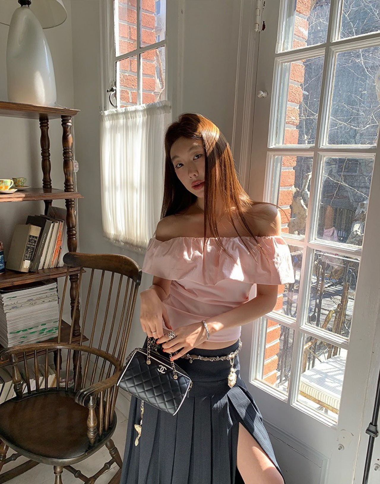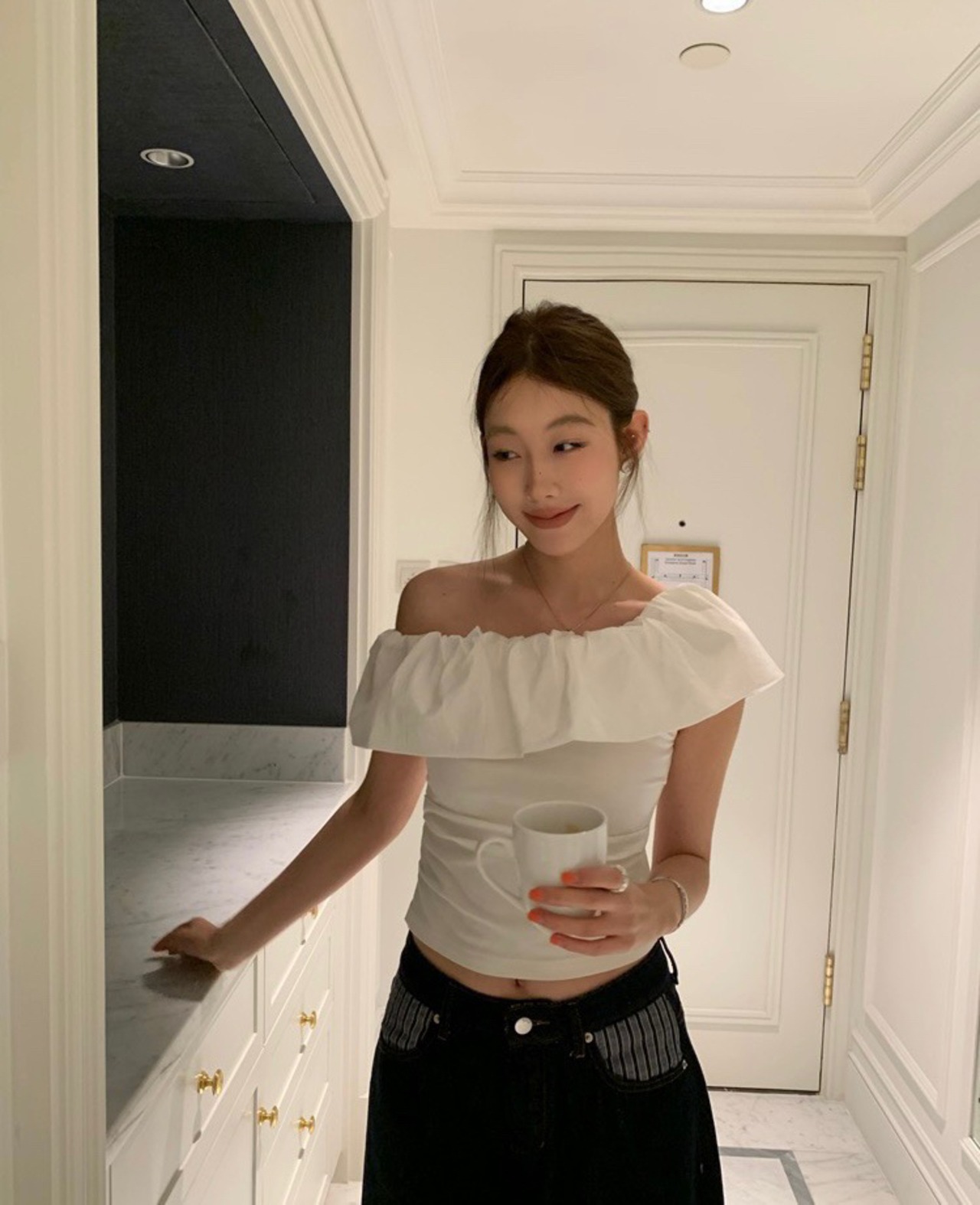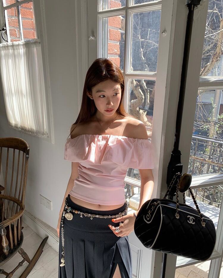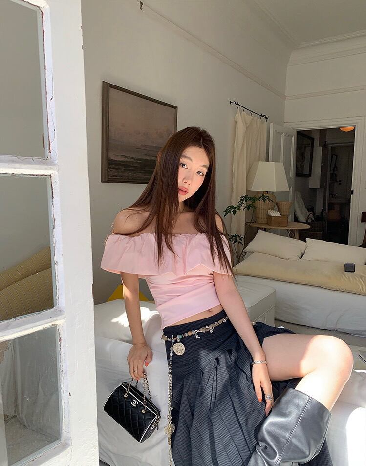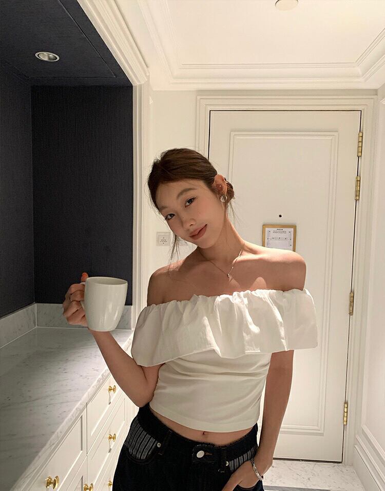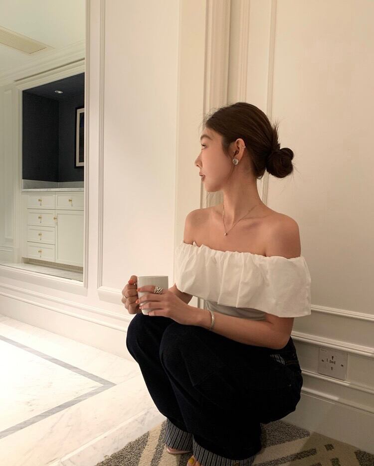 オフショルダー フリルシャツ|カジュアルスタイル