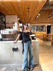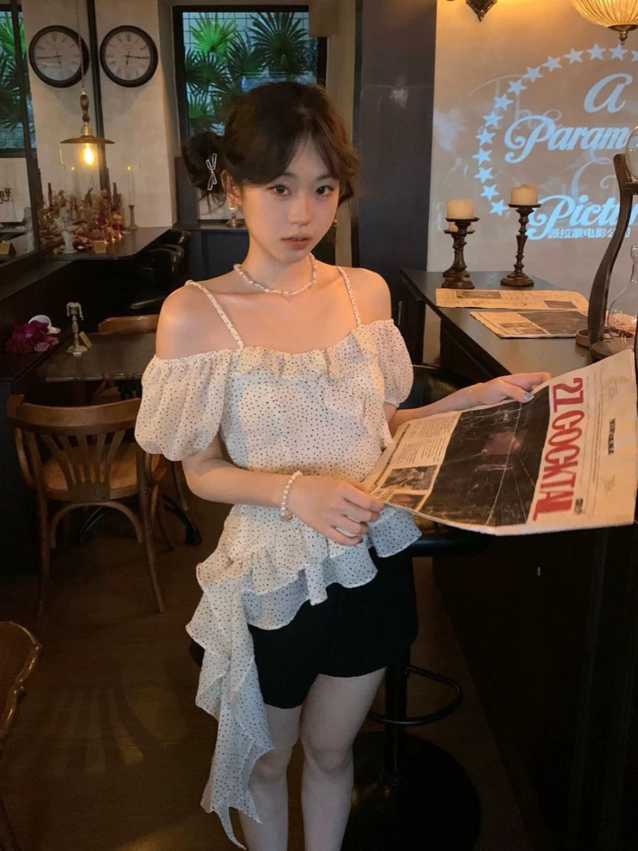 ドットオフショルダー |アシンメトリー カジュアルスタイル