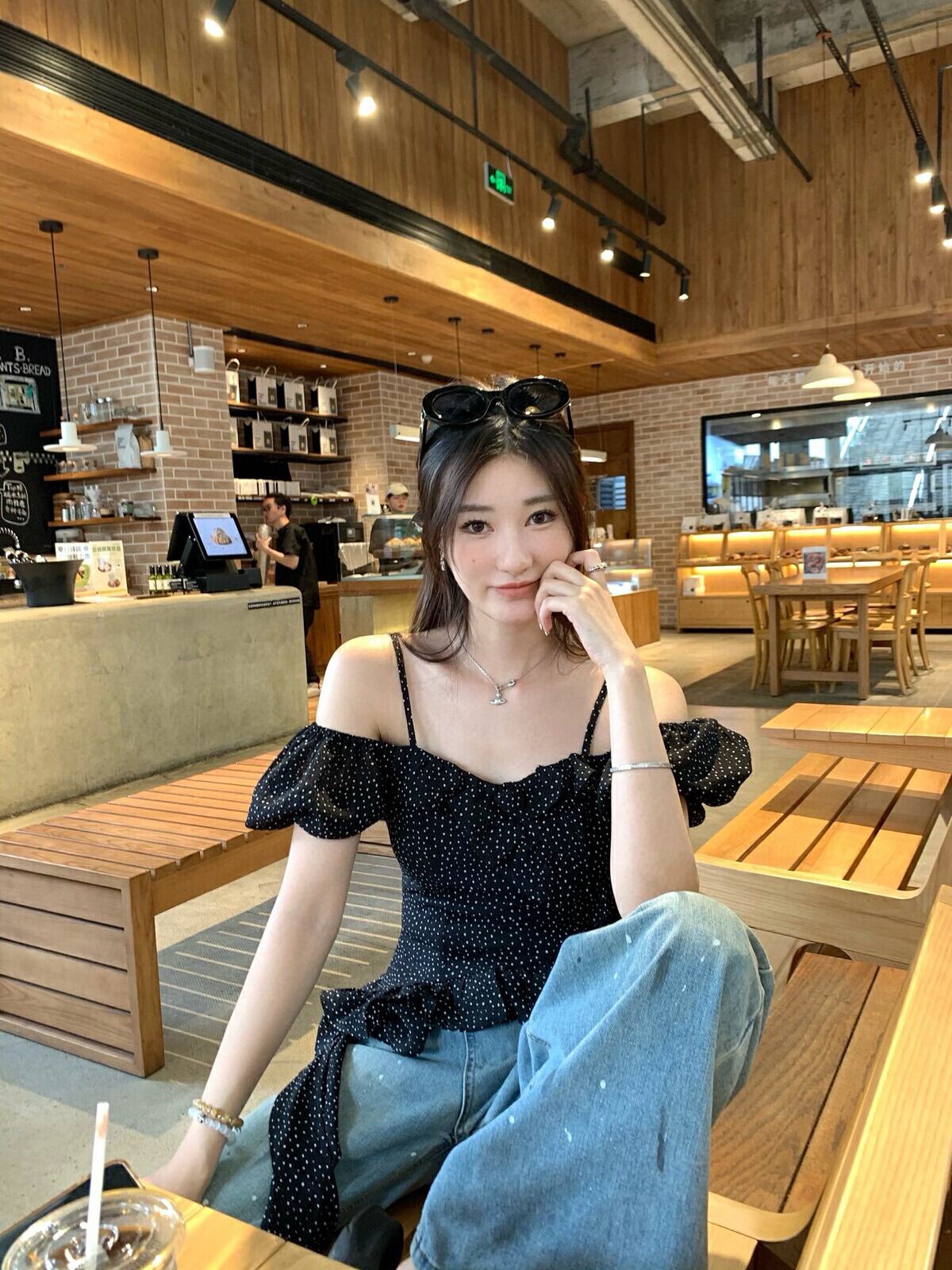 新しいスタイルを創るための一着として、ぜひこのドットオフショルダーをあなたのワードローブに加えてみてください!ショッピングをお楽しみください!